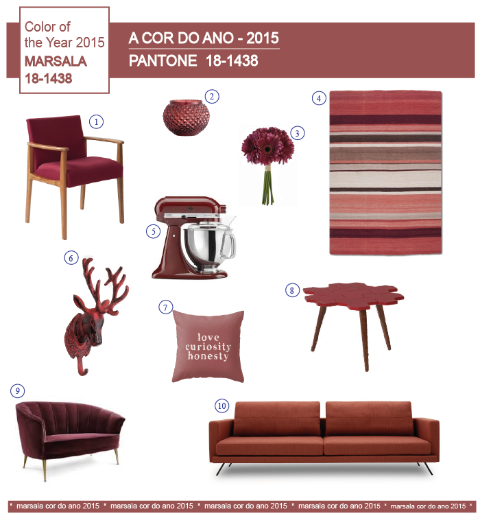 Como acontece todos os anos, o Instituto Pantone acaba de lançar a cor que será tendência para o ano de 2015.  Nesta edição, a eleita dos pesquisadores foi a cor Marsala (código 18-1438), uma mistura de marrom avermelhado exatamente como tom do vinho de mesmo nome, produzido na região da Sicília, na Itália.