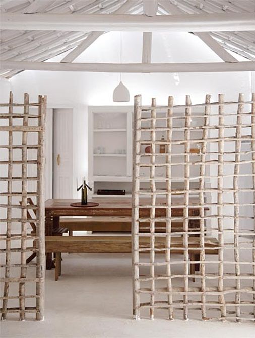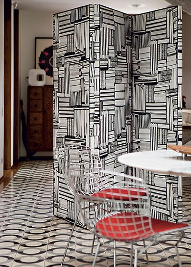 Sim, o biombo tem muita história para contar. Literalmente, já que o primeiro uso era exatamente este, narrar uma história por vezes mitológica, cotidiana ou mostrar cenas da vida dos palácios e da natureza. Ele já teve seu apogeu narrado em livros, filmes e pinturas e depois do auge recente nos anos 70, o biombo está de volta com novos materiais e modelos que vão deixar sua casa com muito mais estilo. Então pense bem na hora de decorar o escritório, dividir a sala de estar, esconder alguma imperfeição na parede ou a bagunça do quarto das crianças, preservar a intimidade na suite ou mesmo na área do chuveiro da piscina. Aqui selecionei algumas composições com biombos mais contemporâneos, com outros materiais e texturas, mas o tradicional de madeira também é muito versátil em qualquer ambiente.