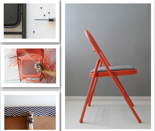 Para os adeptos do DIY (Do It Yorself) ou Faça Você Mesmo segue uma ótima ideia para dar uma repaginada naquela cadeira de ferro dobrável, estilo bar. O final de semana está chegando, aproveitem!