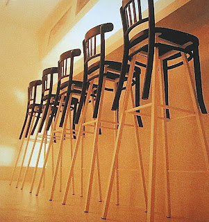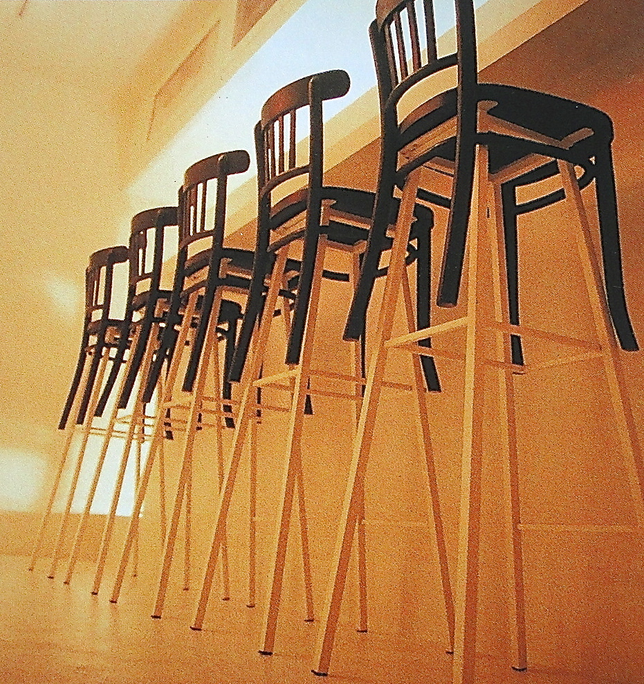 Seguindo a mesma linha de união, a equipe de criação da agência Air Conditioned fez a união das pernas de um banco alto, tradicionalmente usados em balcões de bar, com a cadeira “estilo Thonet” para criar os assentos do bar Soft, em Tóquio. O ponto onde esses bancos estão fica numa área intermediária entre o bar-restaurante e a boate. O design do móvel também representa isso: meio cadeira de restaurante, meio banco de bar. Simples e genial, não é?