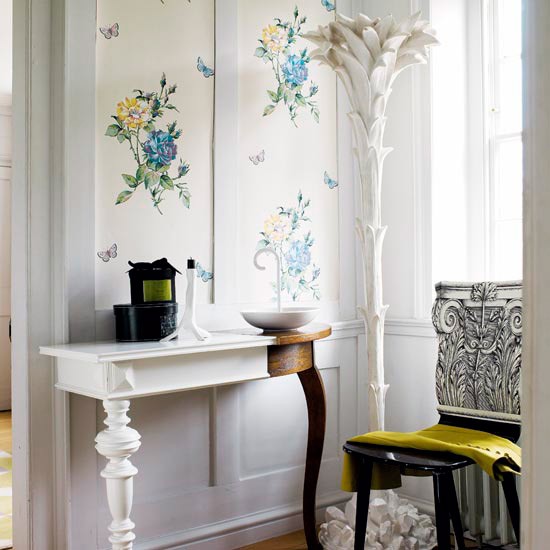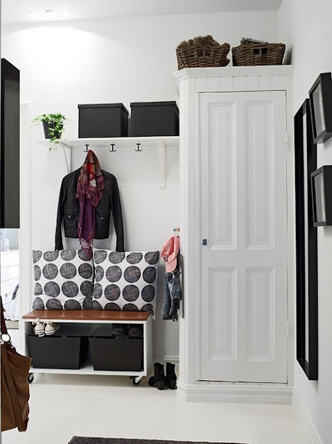 O hall (outrora chamado de vestíbulo ou ante-sala) é um recurso arquitetônico antigo e servia inicialmente para recepcionar pessoas menos íntimas, para não terem que conversar no exterior da casa, e também para que moradores e visitantes vestissem ou tirassem casacos, chapéus, bengalas e outros adereços. Com o passar do tempo, e a diminuição das casas e apartamentos, esta divisão imediata à entrada principal da casa sumiu. Mas para quem ainda tem um hall, corredor ou pequeno espaço na entrada da sua sala, pode criar um cantinho charmoso e útil para, além de causar boa impressão aos convidados, ajudar você na hora do entra e sai. Seja para pendurar o casaco, depositar o guarda-chuva, reunir as chaves, guardar a correspondência ou simplesmente para alojar um espelho ou um belo quadro, inspire-se nas ideias abaixo. Tenho certeza que você dar uma nova função à entrada da sua casa.