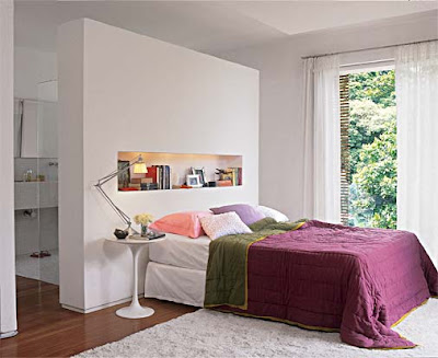 No quarto, o ideal é uma luz difusa ou indireta que é mais acolhedora. No teto você pode usar um dimmer, que ajusta a intensidade de luz conforme a necessidade, e nas laterais da cama abajures na altura do ombro para facilitar a leitura ou luminárias com braços retráteis.