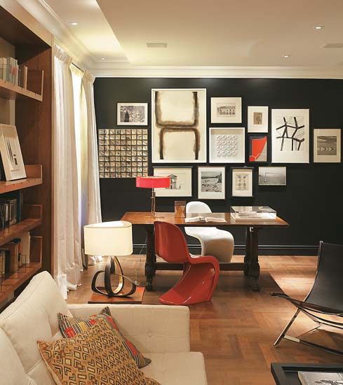 Quando o objetivo é renovar o ambiente, mudar a cor da parede é uma opção rápida e mais barata. As cores escuras estão em alta, pois dão mais destaque à decoração do ambiente. Tons de preto, cinza ou azul escuro conferem um ar elegante à casa, mas cuidado para não inverter o efeito e criar um ambiente pedante e muito sombrio. Misturar detalhes em cores alegres como vermelho, amarelo e laranja certamente ajudará a mudar essa imagem de sobriedade a parede. Uma dica: prefira a tinta fosca, pois além de ser mais fácil de limpar e retocar, combina mais com o tom escuro. Lembre-se que o ideal é promover contrastes, então opte por móveis, pisos e esquadrias mais claros.